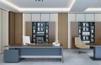 由全鋁打造的全鋁家具董事長辦公桌,黑色皮紋紋理和實木紋理熱轉印的混搭突出產品的莊重時尚。適合各種不同方位的辦公室。